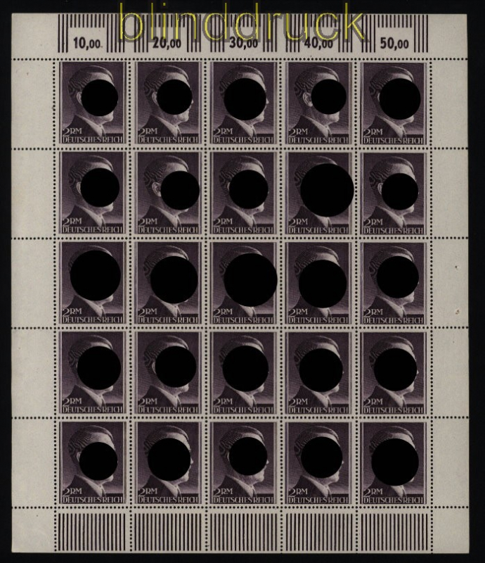Deutsches Reich Mi # 800 B postfrischer Bogen von 25 Marken 2 RM eng gezähnt im kompletten Bogen mit allen Rändern in der Zähnung zwischen der dritten und vierten Markenreihe vorgefaltet dort die Zähnung im Rand etwas angetrennt postfrisch Erhaltung siehe Scan