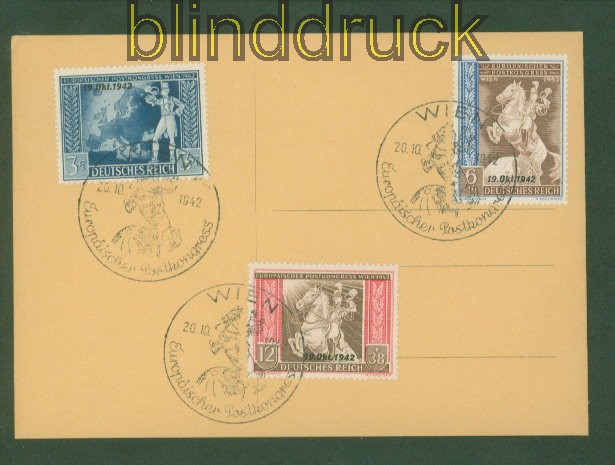 Deutsches Reich Mi # 823/25 Sonderstempel SSt. auf Vorlageblatt Unterzeichnung des Übereinkommens über den europäischen Post- und Fernmeldeverein entwertet mit Sonderstempel SSt. Wien 20.10.1942 auf Vorlagekarton Erhaltung siehe Scan