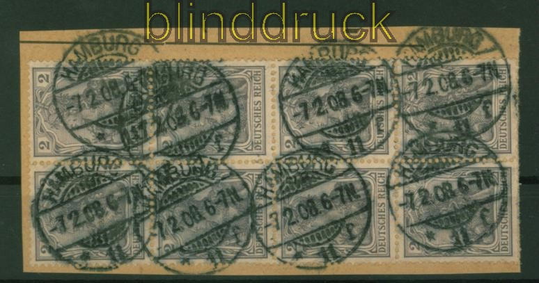 Deutsches Reich Mi # 83 I gestempelter 8er-Block auf Briefstück 2 Pfg. Germania Friedensdruck gestempelter 8er-Block auf Briefstück gestempelt Erhaltung siehe Scan