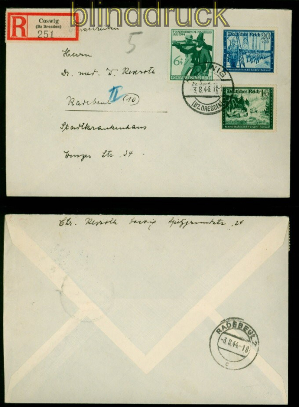 dt. Reich Mi # 836 und 840 MiF R-Brief Donaueschingen 1943 nach Jena (54474)