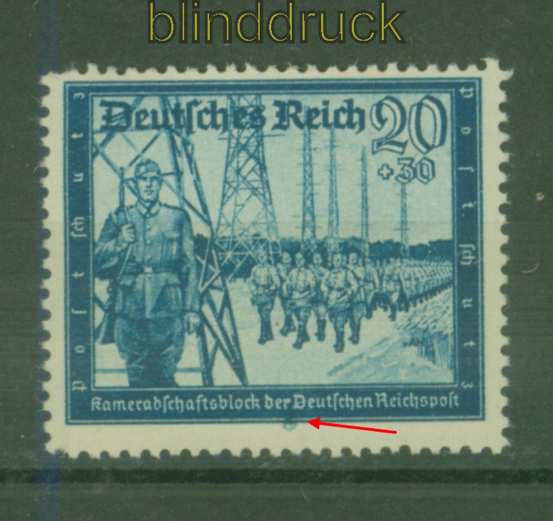 Deutsches Reich Mi # 892 II postfrisch Plattenfehler I 20 Pfennig Kameradschaftsblock mit Plattenfeler II: Fleck im Unterrand postfrisch gute Erhaltung siehe Scan