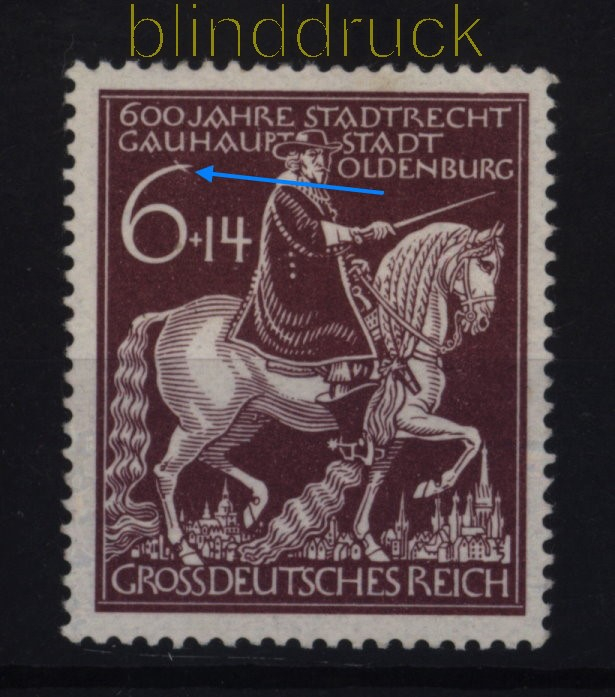 Deutsches Reich Mi # 907 III postfrisch Stadtrechte Oldenburg 6 + 14 Pfg. Stadtrechte Oldenburg mit Plattenfehler III: Schrägstrich durch Ende der Wertziffer 6 postfrisch Katalogwert 80,00 Euro Erhaltung siehe Scan