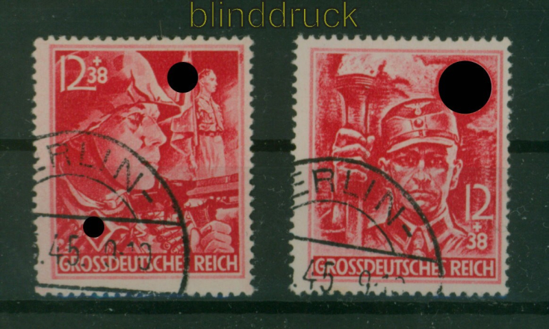 Deutsches Reich Mi # 909/10 Gefälligkeitsstempel Parteiorganisationen komplette Ausgabe entwertet mit Gefälligkeitsstempel Berlin 21.4.1945 dennoch wird der Stempel ,wie wohl alle anderen Entwertungen, nicht echt sein wird daher als falsch angeboten Erhaltung siehe Scan