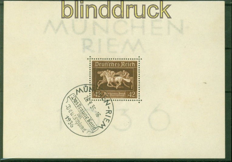 Deutsches Reich Mi # Block 4 gestempelt Braune Band 1936 Blockausgabe Braune Band 1936 gestempelt mit SSt. Sonderstempel Erhaltung siehe Scan