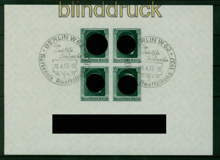 Deutsches Reich Mi # Block 8 gestempelt Sonderstempel Blockausgabe 48. Geburtstag geschnitten Sonderstempel Berlin Nationale Ausstellung "Die deutsche Briefmarke" 1937 Erhaltung siehe Scan