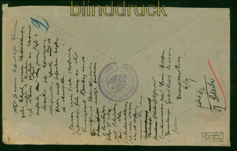 Deutsches Reich Mi # D 25 EF Dienstbrief Hamburg 1.7.1921 nach Stuttgart geprüft Infla Berlin Dienstmarkenausgabe ohne Ablösungsziffer Mi # 25 15 Pfennig portogerechte Einzelfrankatur EF auf Drucksache aus Hamburg 1.7.1921 nach Stuttgart diberse Nachsendungsvermerke Rückseite komplett beschrieben senkrechter Buch links geprüft Infla Berlin Erhaltung siehe Scan