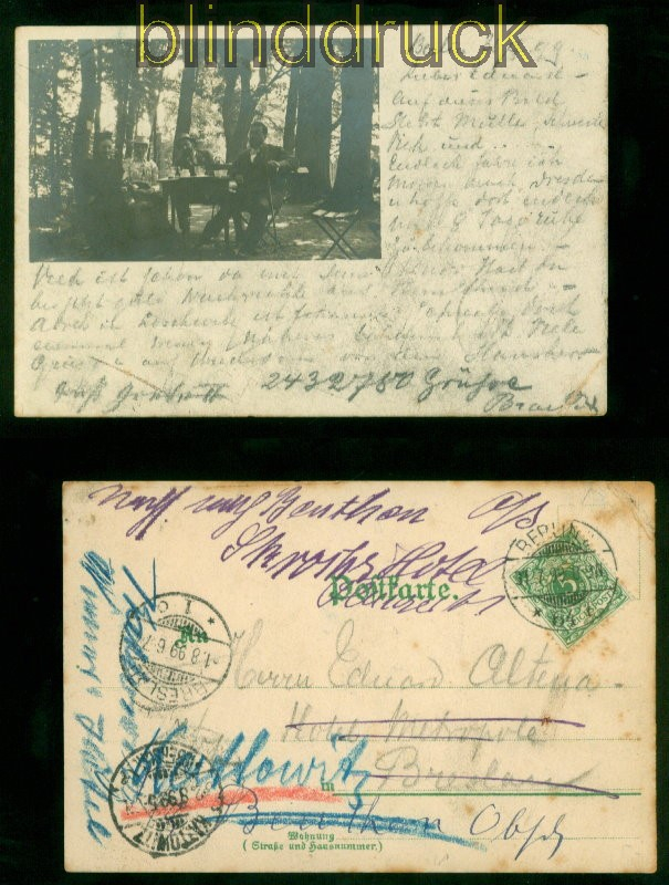 Deutsches Reich Weiterleitung sw-AK Berlin - Breslau - Beuthen - Kattowitz 1899 5 Pfennig Krone/Adler Einzelfrankatur EF auf sw-Foto-Ansichtskarte Berlin Karte gelaufen aus Berlin 31.7.1899 nach Breslau Weiterleitung nach Breslau 1.8.1899 Weiterleitung nach Kattowitz 2.8.1899 Weiterleitung nach Beuthen Erhaltung siehe Scan