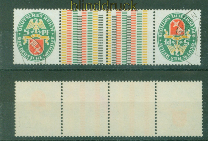 Deutsches Reich Zusammendrucke Mi # KZ 13 gestempelt Nothilfe 1929 5 Pfg. und 5 Pfg. Nothilfe 1929 waagerechter Zwischensteg- Kehrdruck gestempoelt mit Quetschfalte im Steg Erhaltung siehe Scan