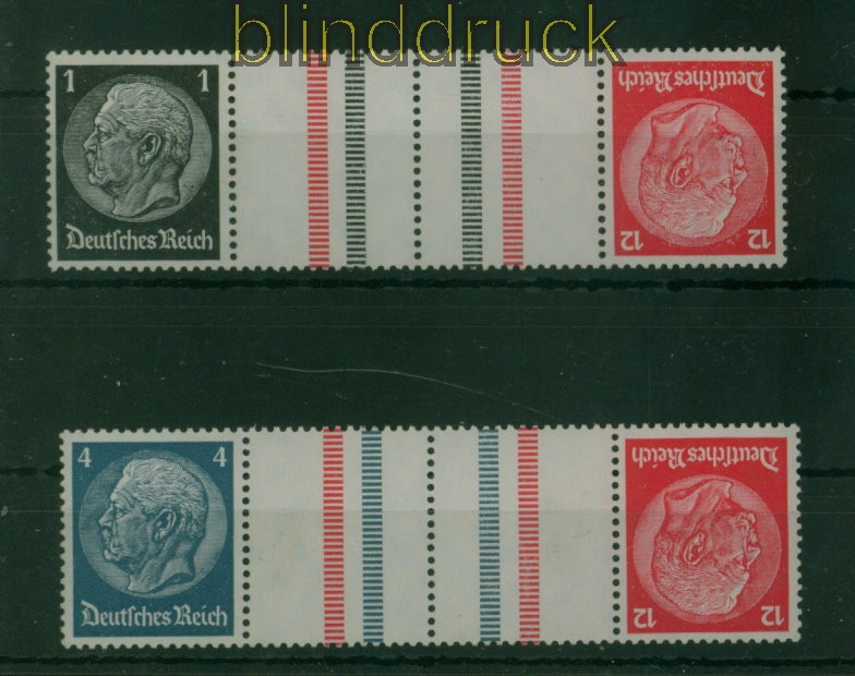 Deutsches Reich Zusammendrucke Mi # KZ 26 und KZ 28 postfrisch Hindenburg Ausgabe Hindenburg Markenheftchen 1937/1939 zwei Kehrdruck-Zusammendrucke mit Zwischensteg postfrisch Erhaltung siehe Scan