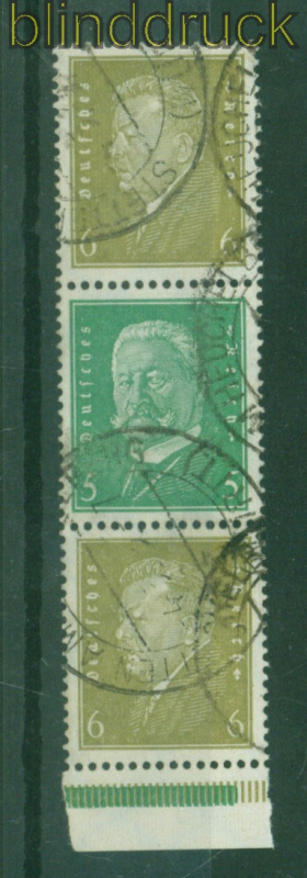 Deutsches Reich Zusammendrucke Mi # S 45 gestempelt Reichspräsidenten 1932 Reichspräsidenten 1932 senkrechter Zusammendruck 6 / 5 / 6 Pfennig gestempelt Erhaltung siehe Scan