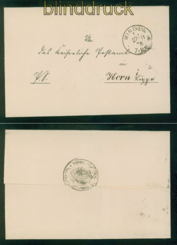 Deutsches Reich portopflichtige Dienstsache Minden 27.11.1876 nach Horn in Lippe gelaufen aus Minden 27.11.1876 nach Horn in Lippe Erhaltung siehe Scan