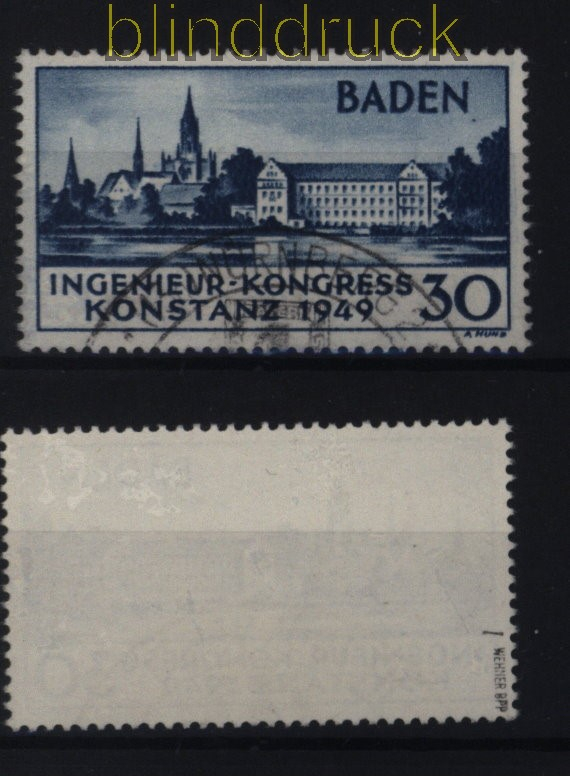 französische Zone Baden Mi # 46 I gestempelt geprüft Wehner BPP Konstanz 30 Pfennig Ingenieurkongreß Konstanz Type I gestempelt bestens geprüft Wehner BPP Erhaltung siehe Scan