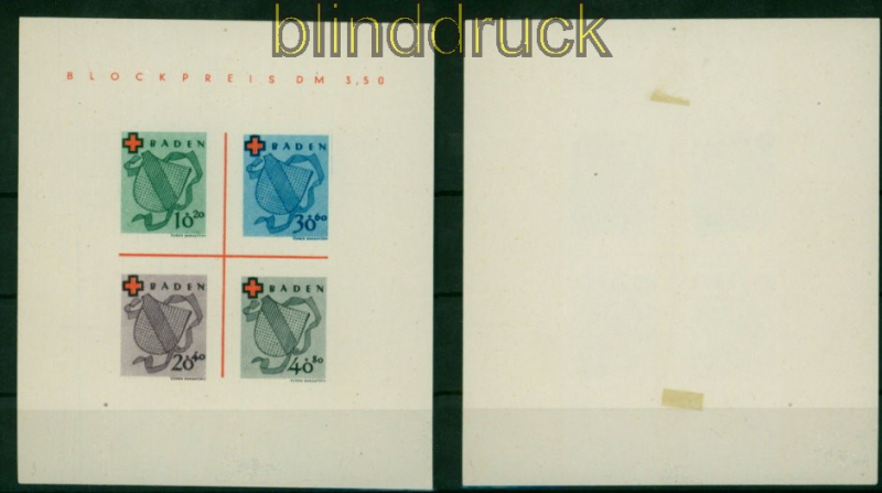 französische Zone Baden Mi # Block 2 I wie verausgabt ohne Gummi Rotes Kreuz Blockausgabe: Rotes Kreuz wie verausgabt ohne Gummi Erhaltung siehe Scan