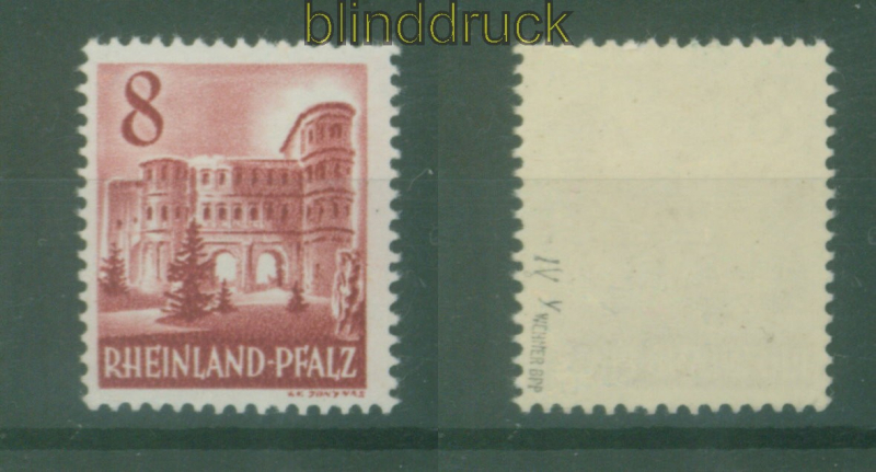 französiche Zone Rheinland-Pfalz Mi # 36 y IV postfrisch geprüft Wehner BPP 8 Pfennig Porto Nigra Trier postfrisch geprüft Wehner BPP Erhaltung siehe Scan